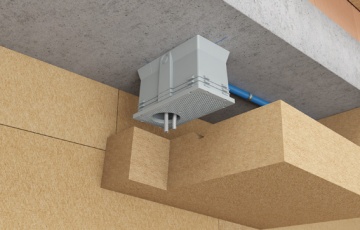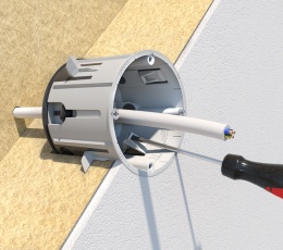 Geräte-Verbindungsdose für Holzfaser-Dämmplatten.
